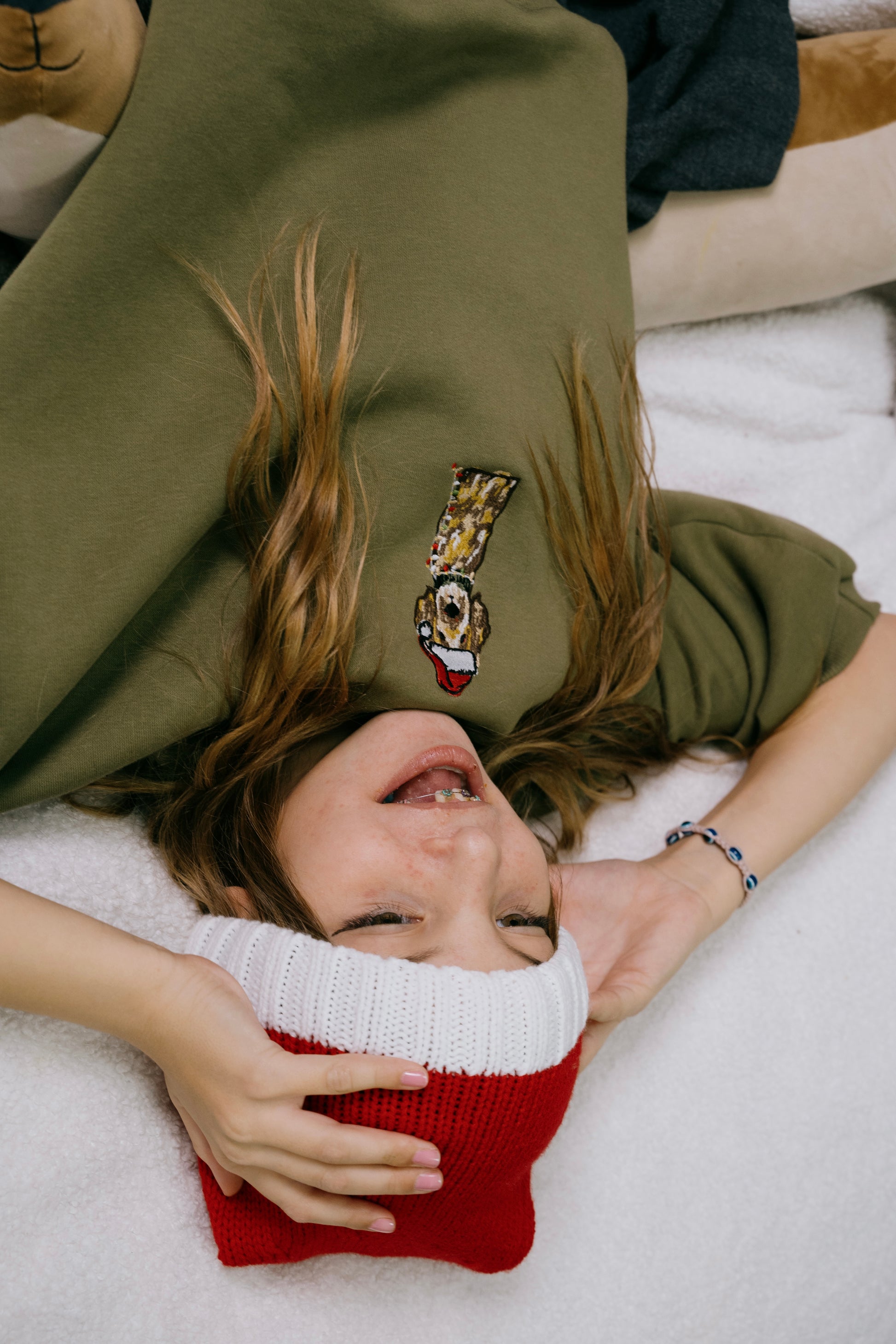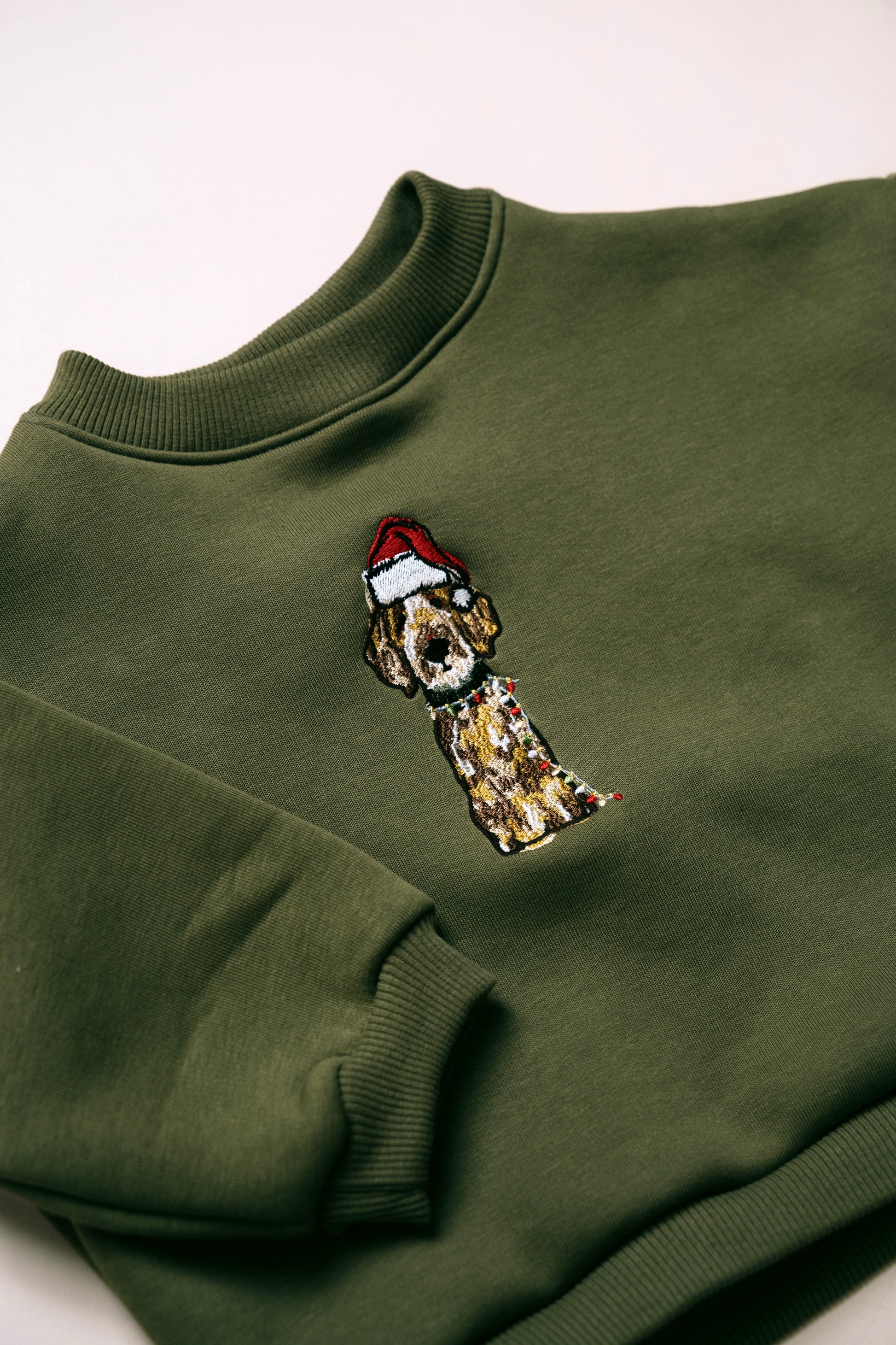 Details: Embroidered dog with santa’s hat on the front.